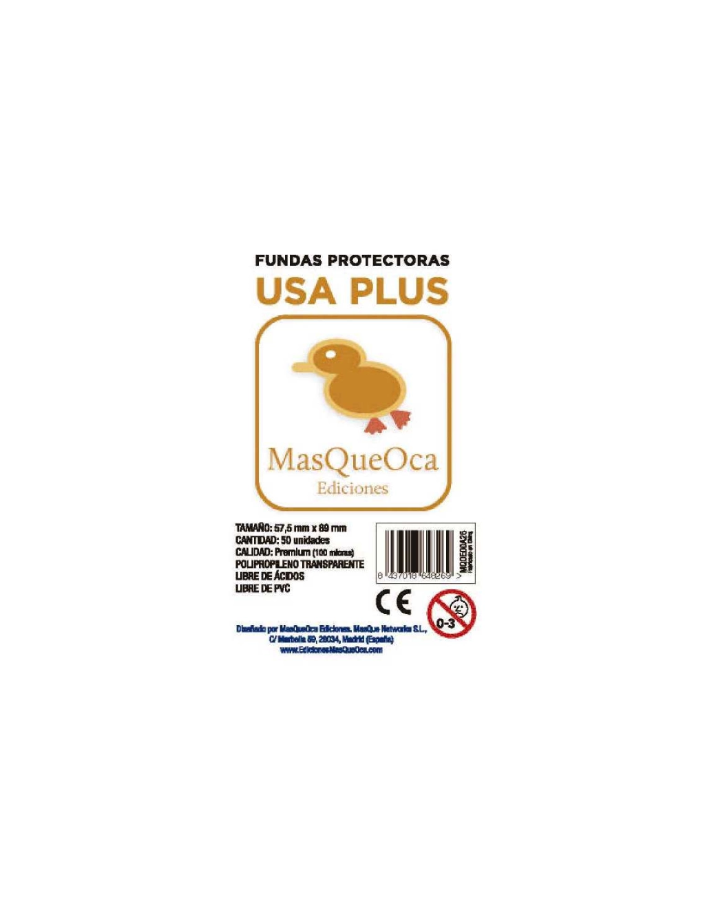 Las fundas MQO USA Plus de 57,5×89 mm, en color naranja opaco, están diseñadas para proteger cartas de tamaño USA Plus, un formato ligeramente más grande que el estándar americano.