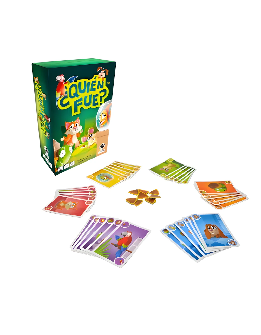 En ¿Quién Fue? cada jugador tiene cartas de animales. Cuando aparece un “accidente” en la sala 😅, debes acusar a otro animal rápido y sin repetir. Si te equivocas o tardas, te llevas la culpa. Gana quien se quede sin cartas primero. Es un juego ágil, de memoria y reacción, con muchas risas y acusaciones divertidas.