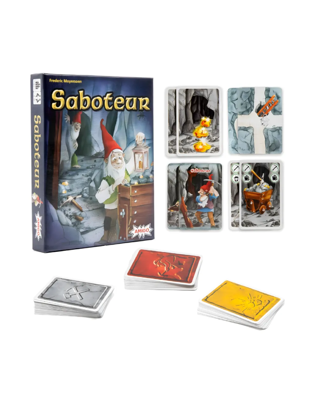 En Saboteur, los jugadores se convierten en enanos mineros que excavan túneles en busca de oro escondido en las montañas. Sin embargo, entre los trabajadores se esconden saboteadores secretos cuyo objetivo es frustrar los planes del grupo, derrumbando túneles, desviando caminos o bloqueando el acceso al tesoro.
