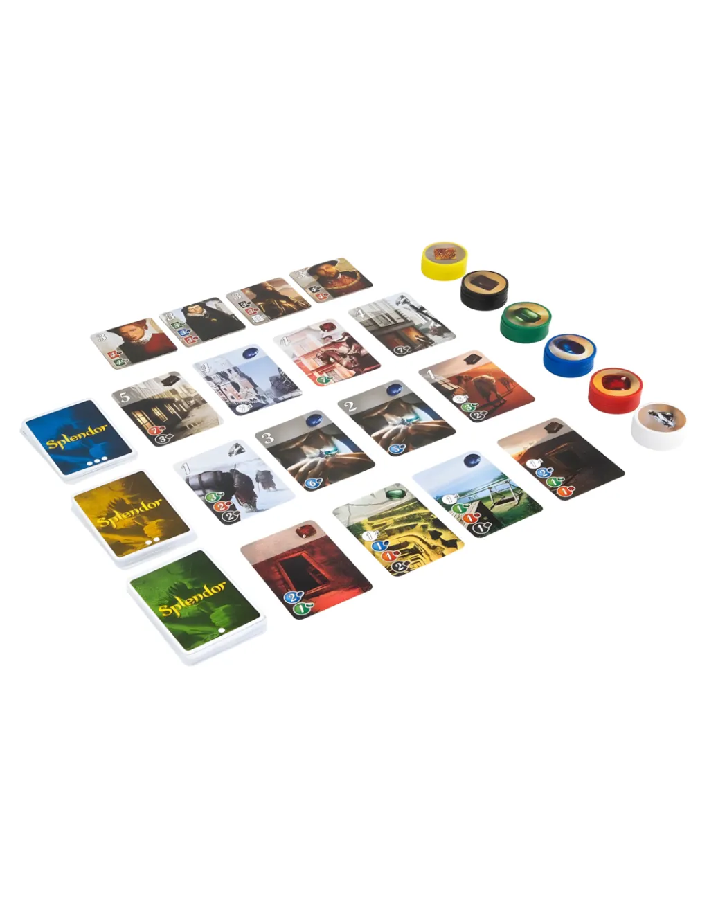 En Splendor, los jugadores asumen el papel de ricos mercaderes renacentistas que buscan aumentar su prestigio a través del comercio de gemas y la adquisición de cartas de desarrollo. Con reglas sencillas pero gran profundidad estratégica, este juego se ha convertido en un clásico moderno.