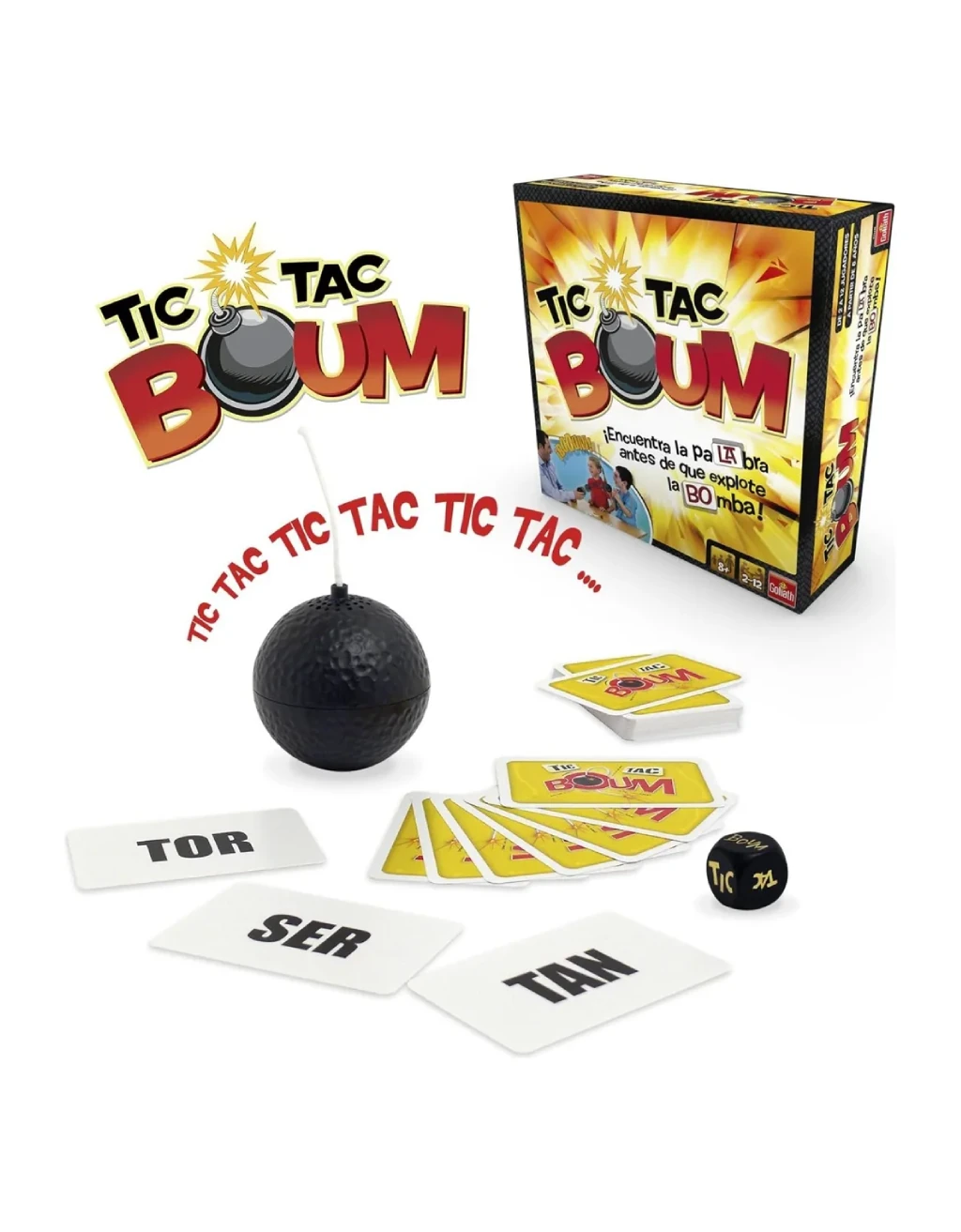 Tic Tac Boum es un juego de agilidad mental y risas aseguradas, donde los jugadores deben decir palabras que cumplan con una consigna antes de que la bomba explote. Cada ronda propone un reto distinto, y los jugadores deberán pensar rápido para pasar la bomba antes de quedarse con ella.