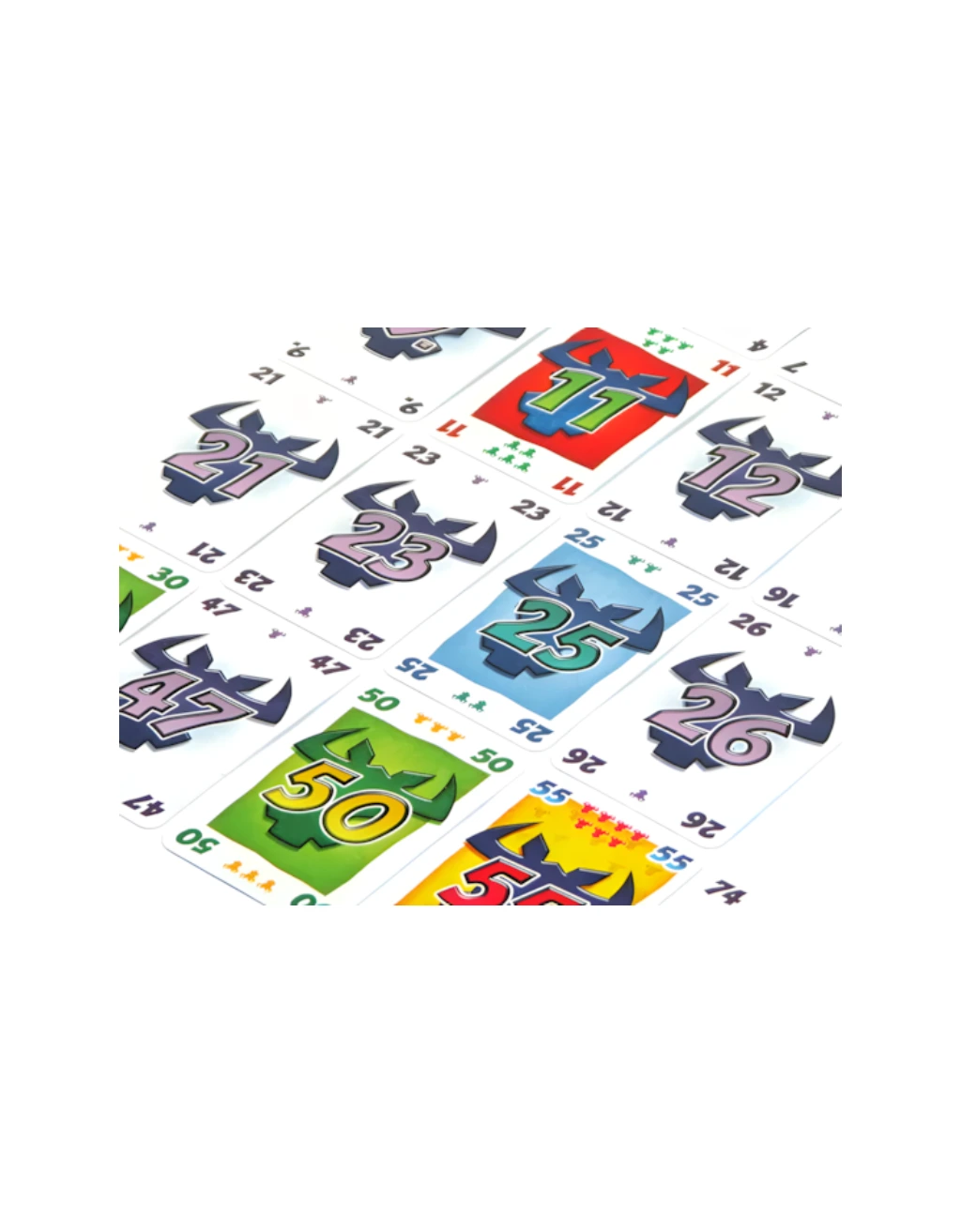 Toma 6! es un clásico juego de cartas creado por Wolfgang Kramer, conocido por su sencillez, rapidez y altas dosis de diversión. Cada carta del mazo tiene un número y una serie de cabezas de buey que representan puntos negativos. El objetivo es evitar acumularlos, ya que el jugador con menos puntos al final de la partida será el ganador.