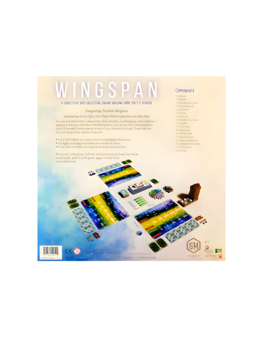 El juego destaca por su arte espectacular y componentes de gran calidad, incluyendo cartas ilustradas con más de 170 especies de aves reales, cada una con habilidades basadas en sus características biológicas.